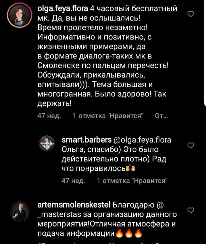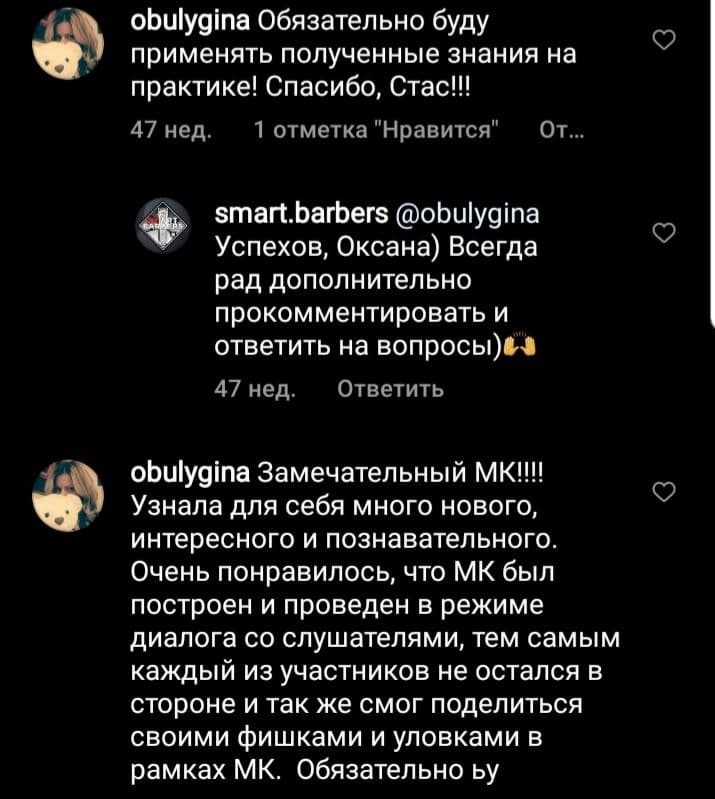 2.4. Услуга - это видеоурок - информационно-обучающая видеозапись, передаваемая Исполнителем Клиенту за плату. Оказание услуг осуществляется путем передачи (отправкой Клиенту после оплаты на указанные контакты при отправке заявки на сайте) ссылки на скачивание и/или просмотр урока. Также услугой является доступ к видеоурокам на канале SMART BARBERS. Также программа обучения: прямые эфиры и тесты на площадках установленных Исполнителем.